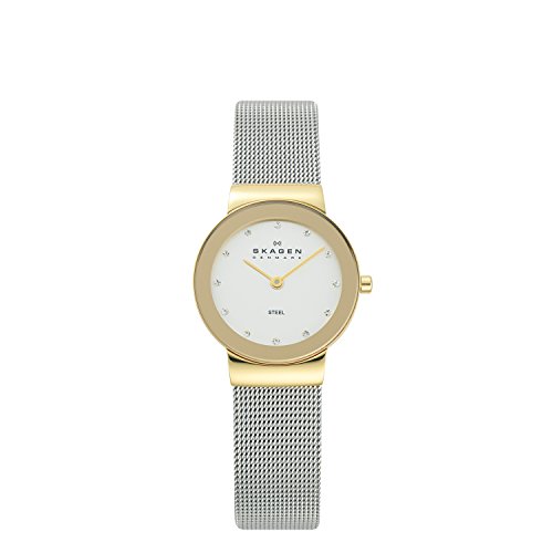 Best Seller! Skagen Ladies Watch 358SGSCD with Silver Stainless Steel Bracelet and gold case Review